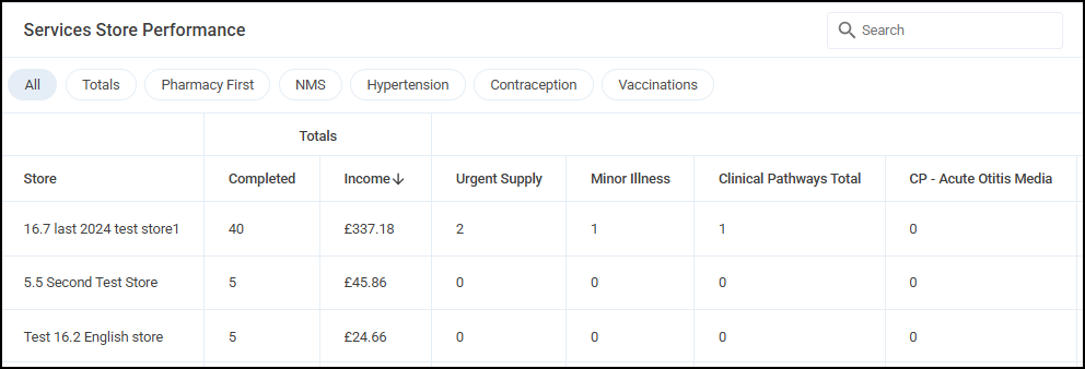 Pharmacy First Income - Displays the total income due for completed Pharmacy First referrals for the store.