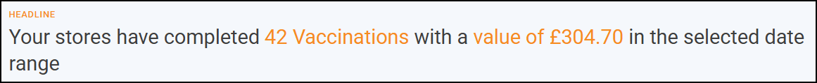 The Flu & Covid Vaccinations headline provides a real time summary of the number of Flu and Covid vaccinations completed over the selected time frame.