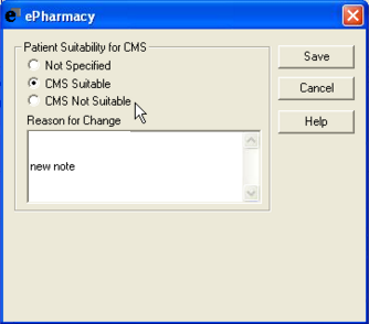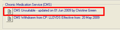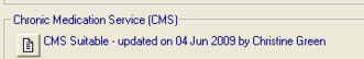 - From the CMS section, you can see the patient’s current CMS (Serial Prescribing) suitability status. There are three possibilities: