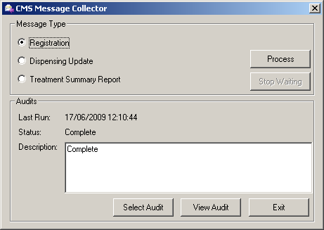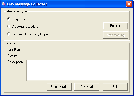 - From the Vision front screen, select Modules – CMS Message Collector.