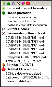 - The Patient Record displays. The Patient Record varies depending on your practice and personal settings, see Consultation Manager Setup and Patient Preview for details. A common Patient Record usually consists of a: