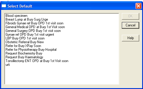 - Provider details - You can either leave these blank at this stage, and fill them in when you make the individual referral; or if you always make this referral to the same place, select the unit, department, and consultant. These, of course, must already be set up in Organisations - File Maintenance.