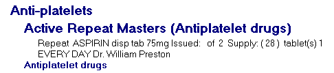 Note - Remember that once prescribed, and if the Active Repeat Masters (Drug class title) line is used, then a drug line under this heading that starts with the word Repeat is an issue; and a line that starts with the drug name is a repeat master.