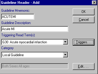 - Triggering Read Term - Click on the Triggers button if you want to have a Triggering Read Term, ie every time that Read term is used, you will be prompted to run this report or trigger display of this guideline. For a full explanation, see Edit Guideline Triggers in the Guideline section.