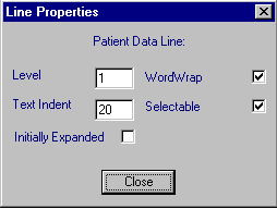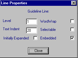 If you click with the right mouse on a guideline or report line in Design Mode, you can select Properties, which displays the Line Properties screen with options for Line Levels and Text Indents, Word Wrap, Selectable, Initially Expanded, Embedded. The extra option of Embedded is only available if you right click on an embedded guideline line.