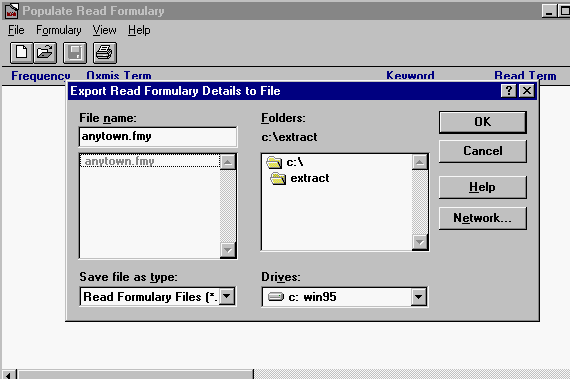 At the Export Read Formulary Details to File screen, give the formulary a filename before the extension of .fmy. It is saved by default to the c:\extract directory.