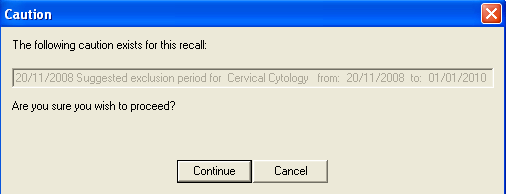 When adding data, Vision 3 checks to see of a caution exists which has today’s date and has the same SDA or exact Read code as the data being entered.