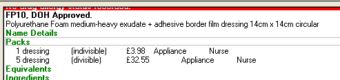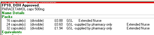 The Packs section on the Drug Select screen shows whether items are in the Nurse formulary or Extended formulary.