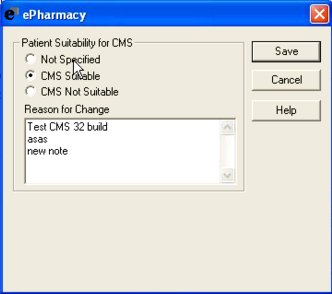 - From the CMS section, you can see the patient’s current CMS Suitability status.