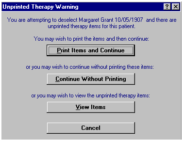 - View Items - The Therapy Print screen displays to you can view the unprinted therapy items.