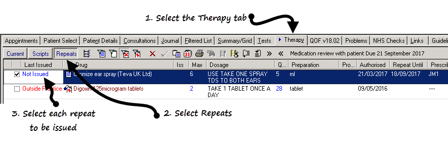 - Click on the Therapy tab and select Repeats.