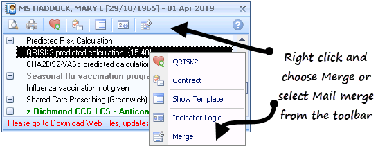 Note - The following options are also available when performing a mail merge on a group of patients in Practice Reports and some of the options are more suitable when working on a group of patients.