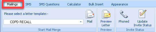 To perform a Mail/SMS Merge, highlight a line on the Alert popup screen and either right click and choose Merge or select Mail Merge ifrom the toolbar.