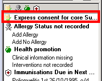 There is a single alert displayed in the Alerts pane of the patient's record, to indicate the current locally held consent status for the patient.
