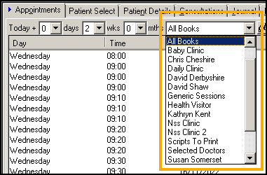 Today +, days, wks and mths filters - Select the time frame to return available appointments working from today's date, for example, if you want to see a patient in two weeks time, you would select '2' in wks and then select Search