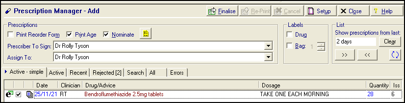 - Press F9 on your keyboard and Prescription Manager displays: