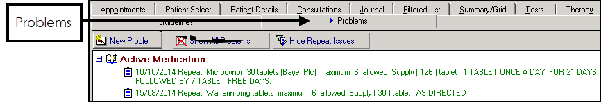 - Select either Therapy - Repeats or Problems - Active Medication: