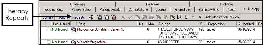 - From Consultation Manager - Therapy - Repeats, remember to select Filter Inactive Repeats