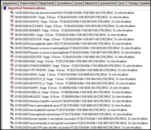 Compound immunisations, such as Diphtheria/Tet/Pert/Polio/Haemophilus (DTaP/IVP/HiB), are sent and received as separate records, for example, individual Diphtheria, Tetanus, Pertussis, Polio and Haemophilus immunisations. Imported immunisations records that fail to covert are file as Medical History entries.