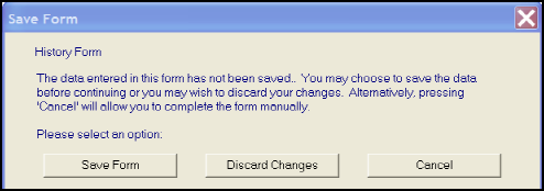 You are warned if you try and deselect the patient and have a current form open, for example, Medical History, Therapy or BP: