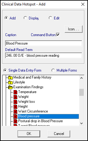 - Default Read Term - Using standard Vision 3 methods, select a clinical term for the hotspot.See Adding Clinical Data for details if required.