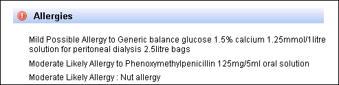 If no allergy status has been recorded for the patient, this is indicated under Allergies: