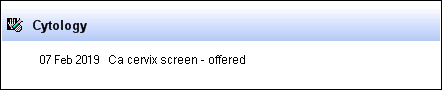 The following information displays in Cytology for all female patients between the ages of 16 years and 65 years: