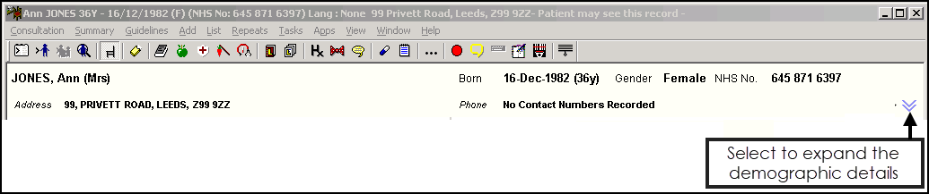 - When the patient was last seen for a face-to-face consultation with the full details of the consultation, see Consultation Types for details.