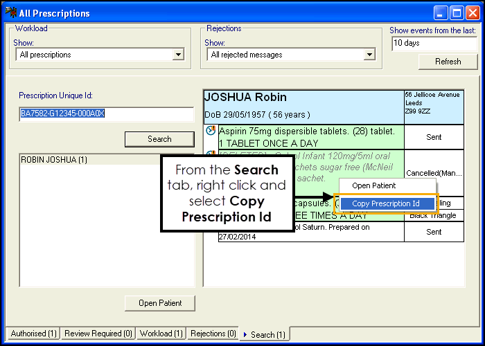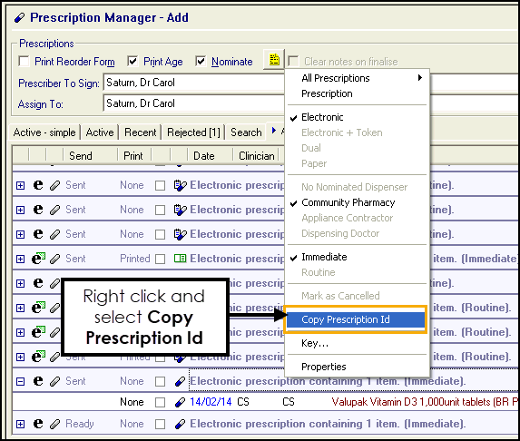 In England the Prescription Id is helpful if using the Electronic Prescription Service (EPS) Tracker system. You can additionally copy the prescription ID from Bulk Signing - All Prescriptions - Search and Authorised tabs:
