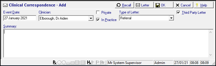 - Third Party Letter - Ticked by default, remove the tick to record an item created by your practice.