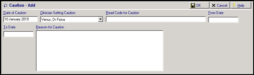 - Date of Caution - Defaults to the current consultation date, update as required.