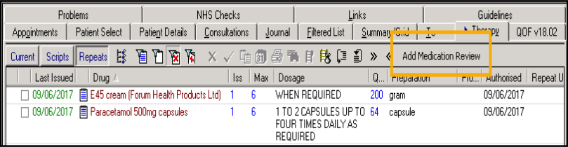 - Select Add - Medication Reviews, remember you can use <Alt+A> then <Alt+RR> if using the keyboard.