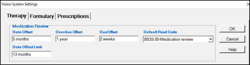 Date Offset - Set the period in the future when you want to carry out the Medication Reviews. The default is six months, update if required.