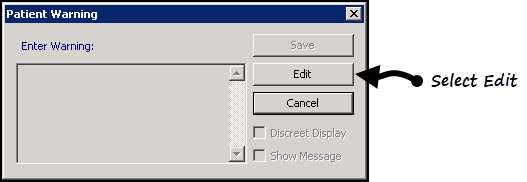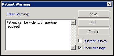 See Edit a Patient Warning and Viewing a Patient Warning for further details.