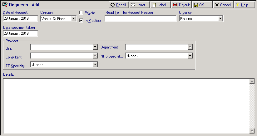 - Read Term for Request Reason- Select the appropriate Read code, see Finding a Read Code for details.