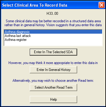 You can set Consultation Manager to select the correct SDA automatically, so when a clinical term is entered that triggers an SDA the correct SDA is presented, see Consultation Manager Setup - Patient Record for details.
