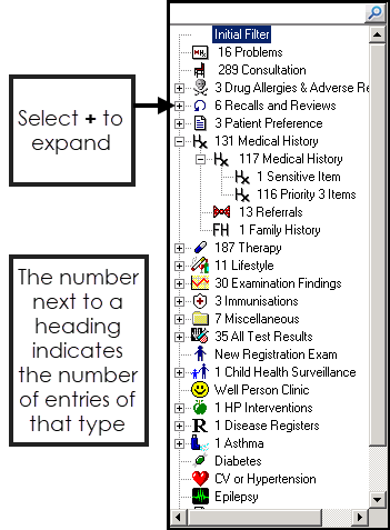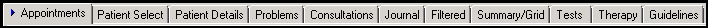 Remember - The tabs offered depend on your settings, see Consultation Manager Setup - Patient Record for details.