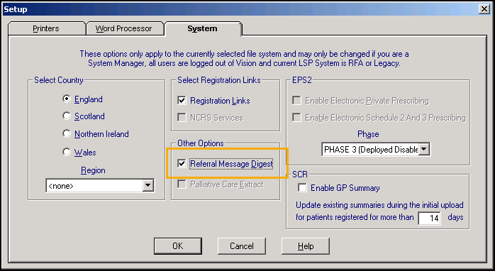 Note - You must be logged on as a System Administrator to enable Referral Message Digest.