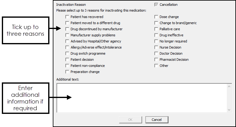 - Select up to three reasons from the Reauthorisation Change Reason screen: