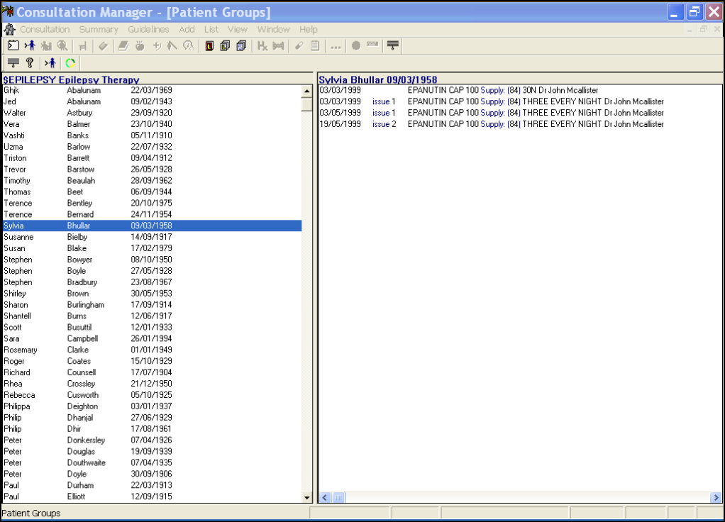 - Double click on the group required, and an alphabetical list of the patients within that group displays.