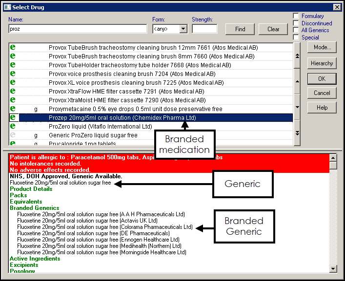 - If the item you have chosen has a drug status of Must Use Generic (this means that prescribing in the generic form is mandatory for this item), and you do not change, when you finally Accept OK on Therapy - Add a message recommends that you switch to the generic form; answering Yes will make the switch.