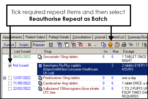 - Tick the repeats you want to reauthorise as repeat dispensing items: