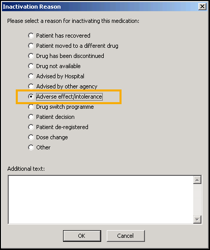 - When prompted, select Adverse effect/Intolerance as the inactivation reason: