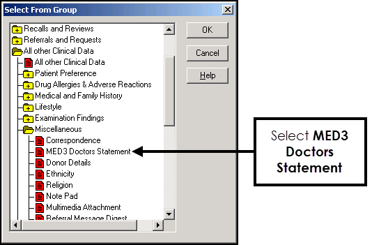 - Select Add Entity, open All other Clinical Data - Miscellaneous and highlight MED3 Doctors Statement.