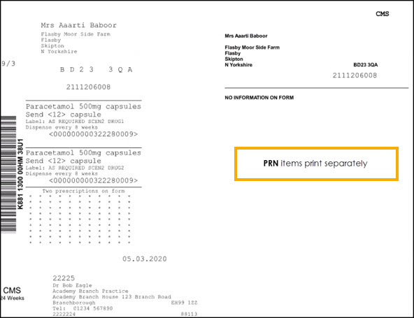 PRN Box - Remove the tick from the PRN box to print/send PRN drugs on the same prescription as non-PRN items