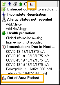 If a patient is marked as residing outside of your catchment area, this is highlighted as an alert within the Consultation Manager Patient Alert pane: