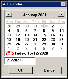 Highlight the date required and select OK: