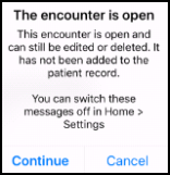 If for any reason, you leave the patient record without having saved the encounter, you are warned that the encounter is still open.