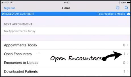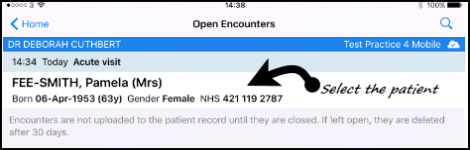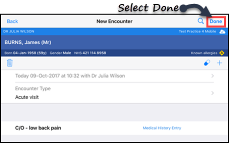 - You must remember to close your encounter when you have finished adding data so that it can be synchronised with the patient record.
