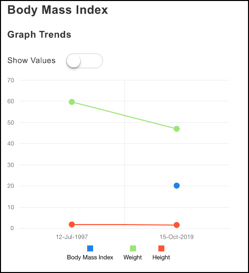 - Graph to view the BMI/Weight/Height trends.